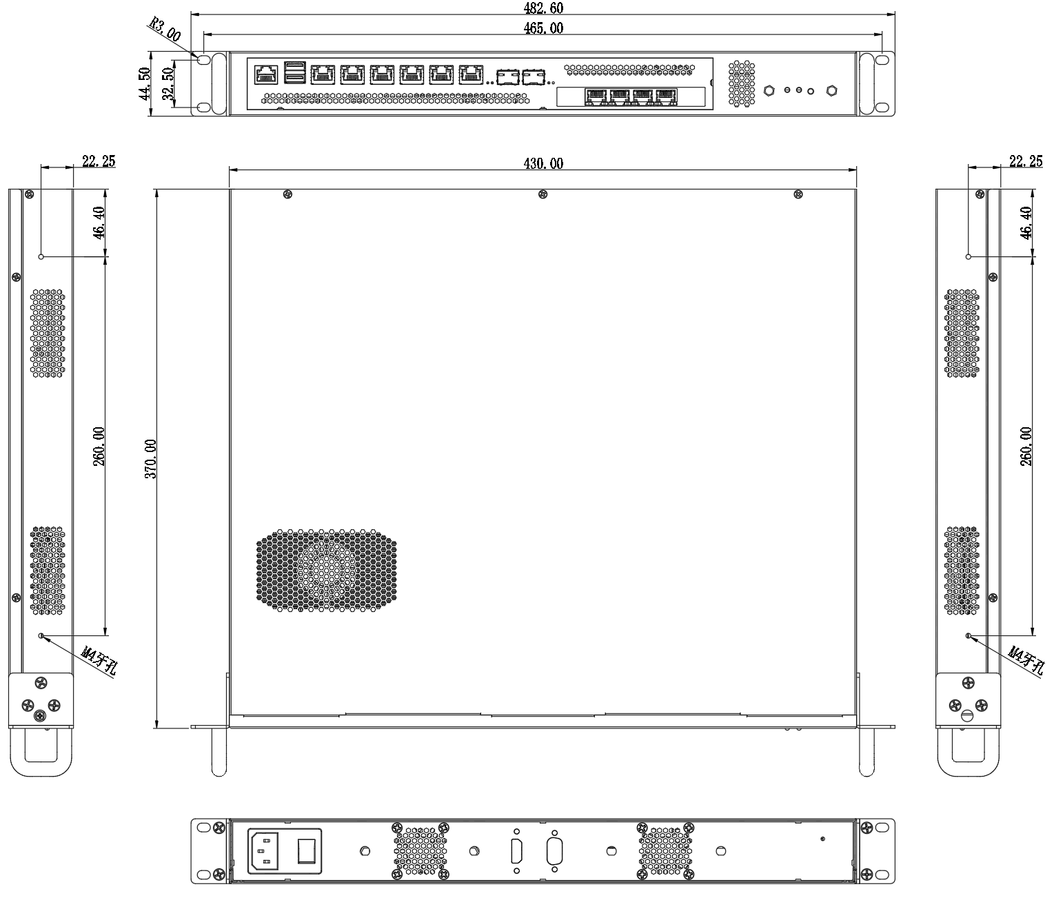 483(寬)x370(深)x44.5(高) mm (含掛耳) |